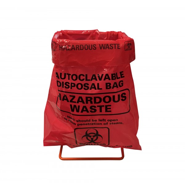 Benchtop Disposal Set, includes metal stand, 5 x 3 x 9" (LxWxH) and 400 red 8.5 x 11" autoclave/ biohazard bags