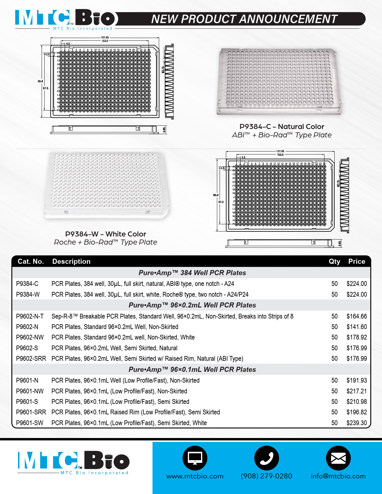 PCR Plates, 384 well, 30µL, full skirt, natural, ABI® type, one notch - A24 , 50/pk