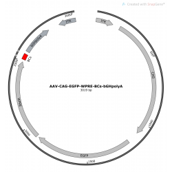 The kit uses a CMV-mCherry reporter system. The CMV promoter provides strong expression in many cell types, and the mCherry signal helps identify and isolate cells that have been successfully infected. WPRE and bGH polyA help increase and stabilize gene expression. Each capsid has three different barcode sequences, allowing analysis at both DNA and RNA levels.