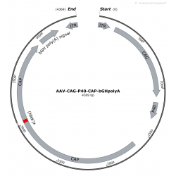 AAV9 Capsid Libraries are designed for the evolution and development of novel AAV capsids with specific characteristics based on AAV9 capsid. AAV9 Capsid Libraries have 7 to 12 amino acid random peptides insertion on the surface of viral capsid at VR-IV or VR-VIII region. AAV9 CAP gene with random peptide are driven by a CAG/P40 hybrid promoter. P40 promoter was used to drive CAP expression during AAV production. CAG promoter is used to express CAP in targeting cells or tissues.