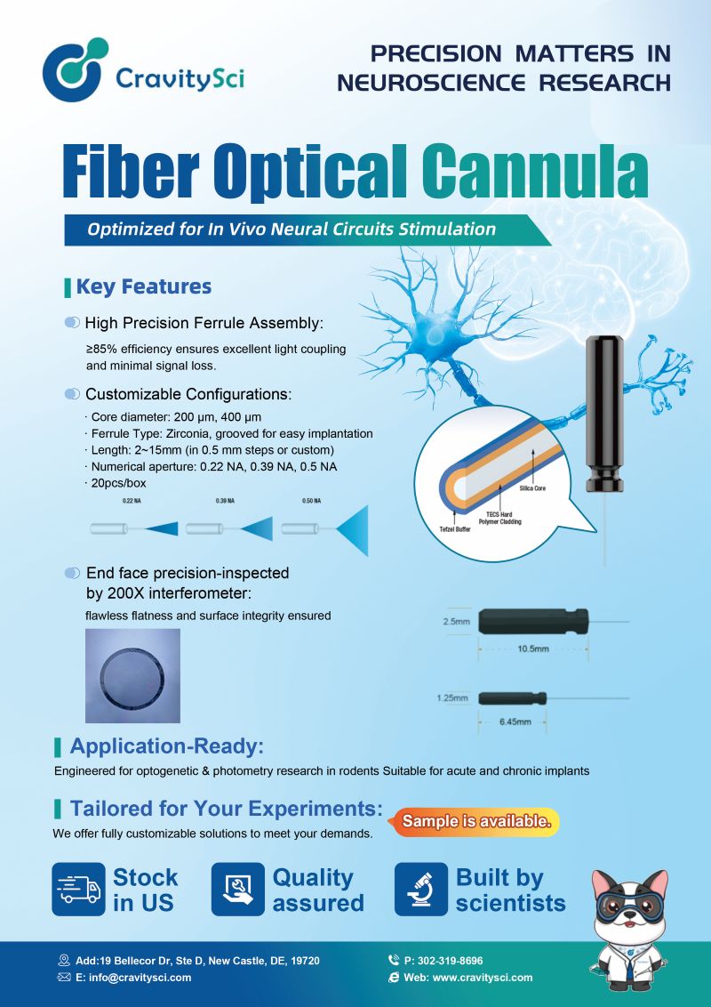 CNS-BF400C22NA,Fiber Optic Cannulae(Black) with Ø2.5 mm Ceramic Ferrule, 400um Core, 0.22NA